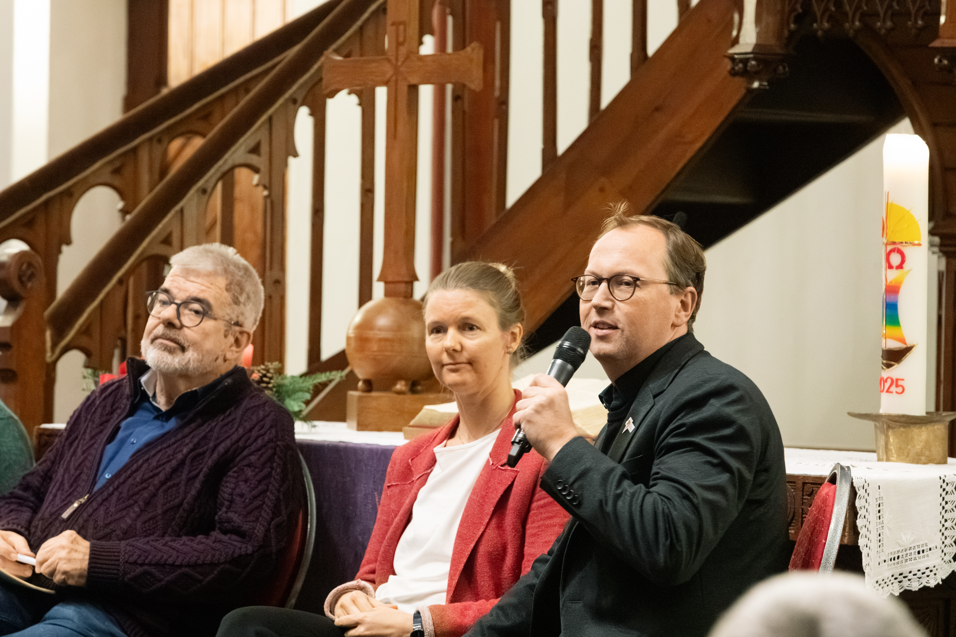 Zur gegenwärtigen Lage des kirchlichen Dienstes in der Arbeitswelt äußerten sich Dr. Johannes Rehm, Pfarrer i.R. aus Nürnberg, von 2006 bis 2023 Leiter des KDA der Evang.-Luth. Kirche in Bayern und Prof. Dr. Traugott Jähnichen, vom Lehrstuhl für Christliche Gesellschaftslehre an der Ruhr-Universität Bochum, in zwei Impulsvorträgen. Beide betonten die Notwendigkeit kirchlicher Präsenz an öffentlichen Orten. „Es mangelt an Geld, an Personal und manchmal auch an Zutrauen in die eigene Botschaft“, sagte Rehm und warnte: „Ein Rückzug aus der Arbeits- und Betriebsseelsorge würde sich bitter rächen.“ Jänichen erinnerte daran, dass der KDA seit seines Entstehungsimpulses auf der Synode von Espelkamp 1955, also von Anfang an, durch Massenarbeitslosigkeit und Umstrukturierungen in Rückbauprozesse involviert gewesen sei. „Wir stehen, angesichts der anstehenden Aufgaben in einer hochpluralisierten Arbeitswelt, wie damals in Espelkamp, vor einem Neubeginn“, folgerte er.